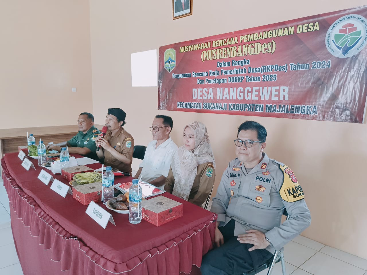 Majalengka, Menghadiri kegiatan Musawarah Perencanaan Pembangunan Desa ( Musrembangdes ) dalam Rangka Pembahasan Perencanaan Rencana Kerja Pemerintah Desa ( RKPDes ) TA. 2024 Desa Nanggewer Kecamatan Sukahaji Kabupaten Majalengka yang diselenggarakan di Kantor Desa Nanggewer, Senin (25/9/2023).