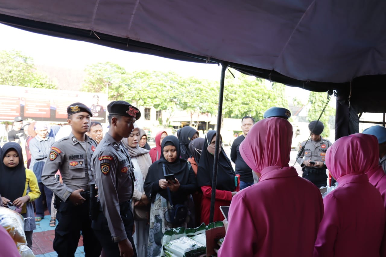 Selain itu, Kami juga menyiapkan Sembako bagi masyarakat yang tidak menggunakan kupon yaitu 600 kemasan beras dan 240 paket minyak goreng. 1 kemasan beras beratnya 5 kg dengan harga Rp 45 rb yang mana harga dipasaran Rp 60 sampai 61 rb dan minyak goreng kita jual Rp 12,5 Rb per/kilo yang dipasaran harganya Rp 15 rb,”terang AKBP Indra Novianto, S.I.K.