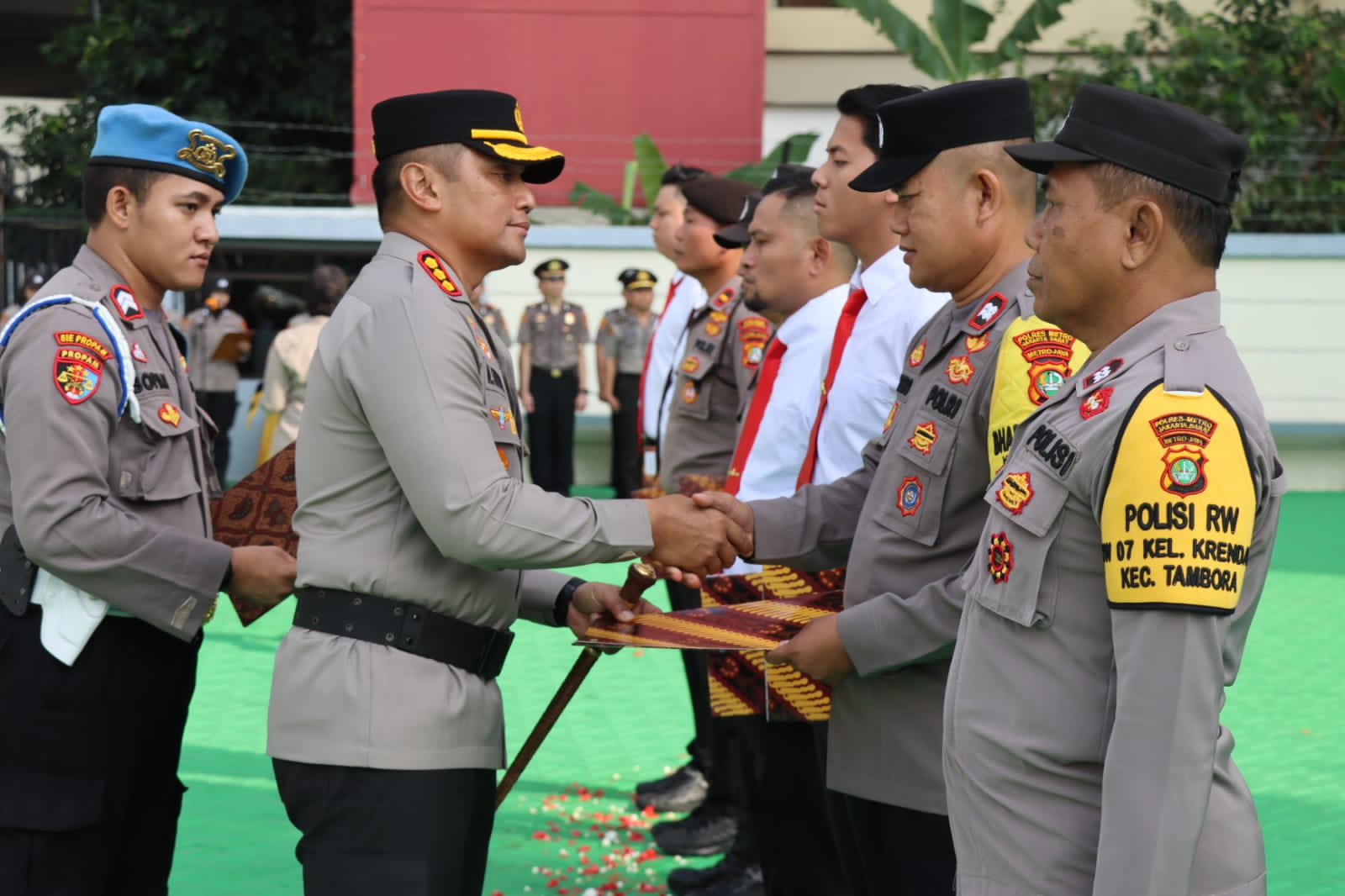 Untuk diketahui momentum kenaikan pangkat tersebut dilakukan dengan penyiraman air kembang yang dilakukan oleh Kapolres Metro Jakarta Barat secara simbolis dan juga dilakukan penyiraman dengan menggunakan kendaraan watercanon