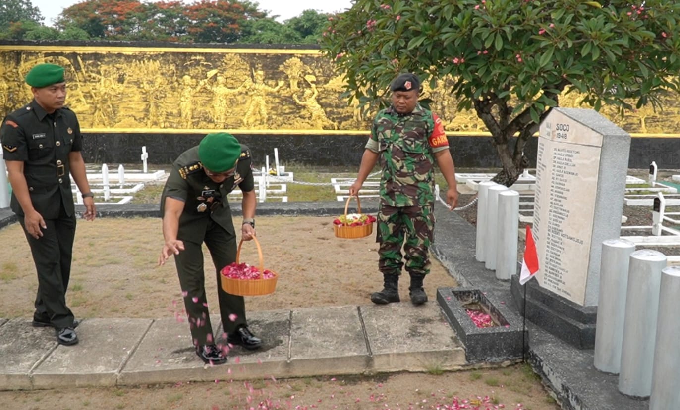 Madiun, – Korem 081/DSJ menggelar ziarah umum di Taman Makam Pahlawan (TMP) Madiun, Kamis (12/12/2024). Kasrem 081/DSJ Letkol Inf Meina Helmi yang bertindak sebagai Irup menyebut, ziarah yang dilakukan bertujuan untuk memperingati Hari Juang TNI AD.