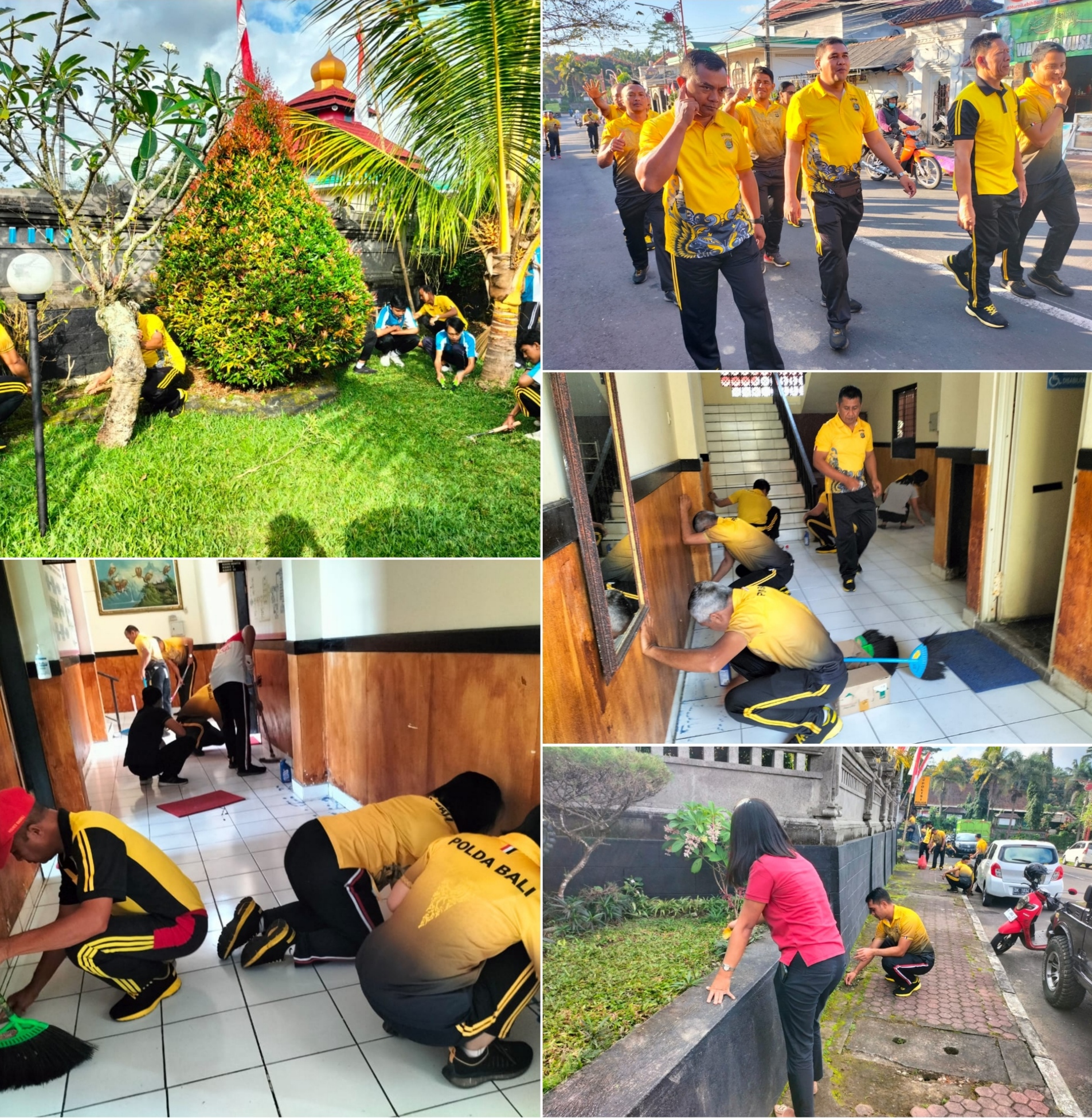 Pelaksanaan kegiatan diawali apel agi dipimpin Kabag SDM polres Bangli Kompol Made Adi Suryawan, Sh., MM dan dipantau Waka Polres Bangli melaksanakan kegiatan olah raga jalan santai keluar Mako dan dilanjutkan kebersihkan halaman kantor, kaca dsn jendela, membersihkan lorong kantor dan selokan masing-masing ruangan kantor agar terbebas dari debu-debu, sampah dan rumput liar.
