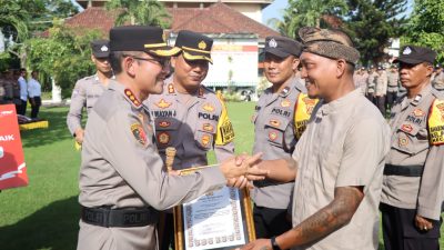 Hadir dalam apel Wakapolresta, pejabat utama dan Personel Polri maupun PNS Polresta Denpasar, apel ini juga dirangkaikan dengan penyerahan hadiah pemenang lomba Banjar terbaik se-Polresta Denpasar.