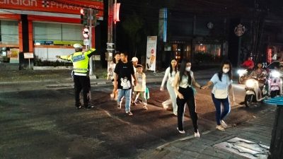 ” Ayo taati imbauan petugas agar selalu berhati hati ketika menyebrang dan gunakan zebra croos untuk hindari kecelakaan ” pungkas Iptu Suarjana.