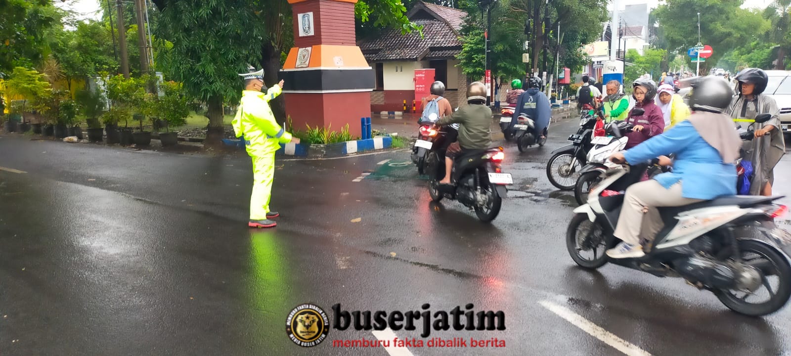 PROBOLINGGO, BUSERJATIM.COM – Giat rutin pelayanan Pengaturan Lalulintas Dengan di guyur hujan anggota tetap melaksanakan Tugas dan kewajibannya untuk membantu masyarakat pengguna jalan raya .
