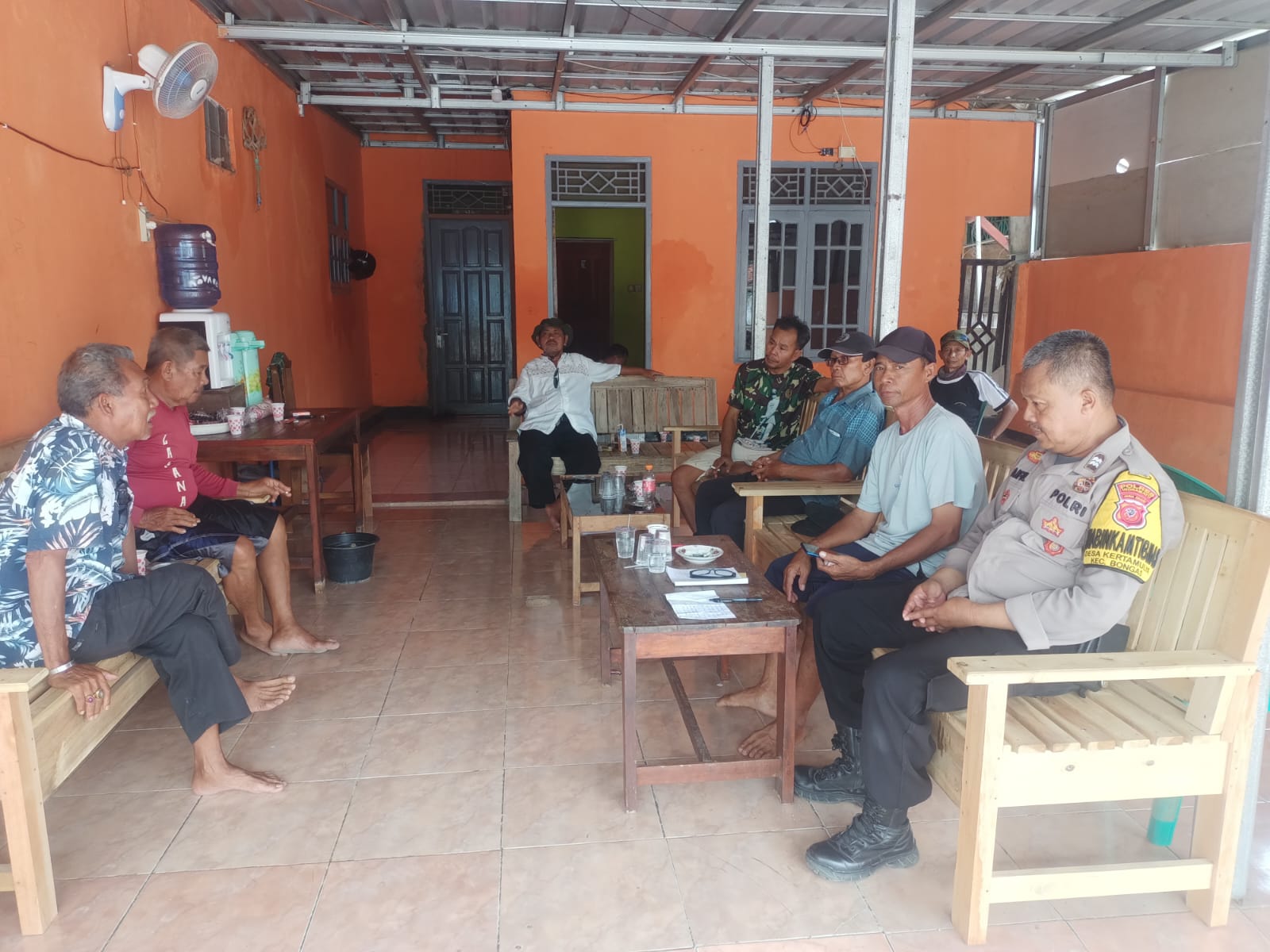 Dengan penuh keramahan dan sikap humanis, AIPTU Saiful Hajar duduk bersama warga sambil berdiskusi santai mengenai situasi keamanan lingkungan serta mendengarkan keluh kesah masyarakat secara langsung.
