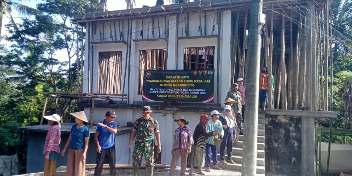 Trenggalek, Buserjatim.com – Peringatan Hari Ulang Tahun (HUT) ke-80 Tentara Nasional Indonesia (TNI) di Kabupaten Trenggalek, Jawa Timur, dirayakan dengan cara berbeda. Bukan parade alutsista, melainkan aksi nyata untuk masyarakat. Kodim 0806/Trenggalek melalui Koramil 0806-05/Kampak menggelar program Bakti Teritorial Prima sekaligus Bakti Sosial dengan menggandeng warga membangun Masjid Subulussalam di RT 35 RW 08, Desa Ngadimulyo, Kecamatan Kampak, Sabtu (13/9/2025).