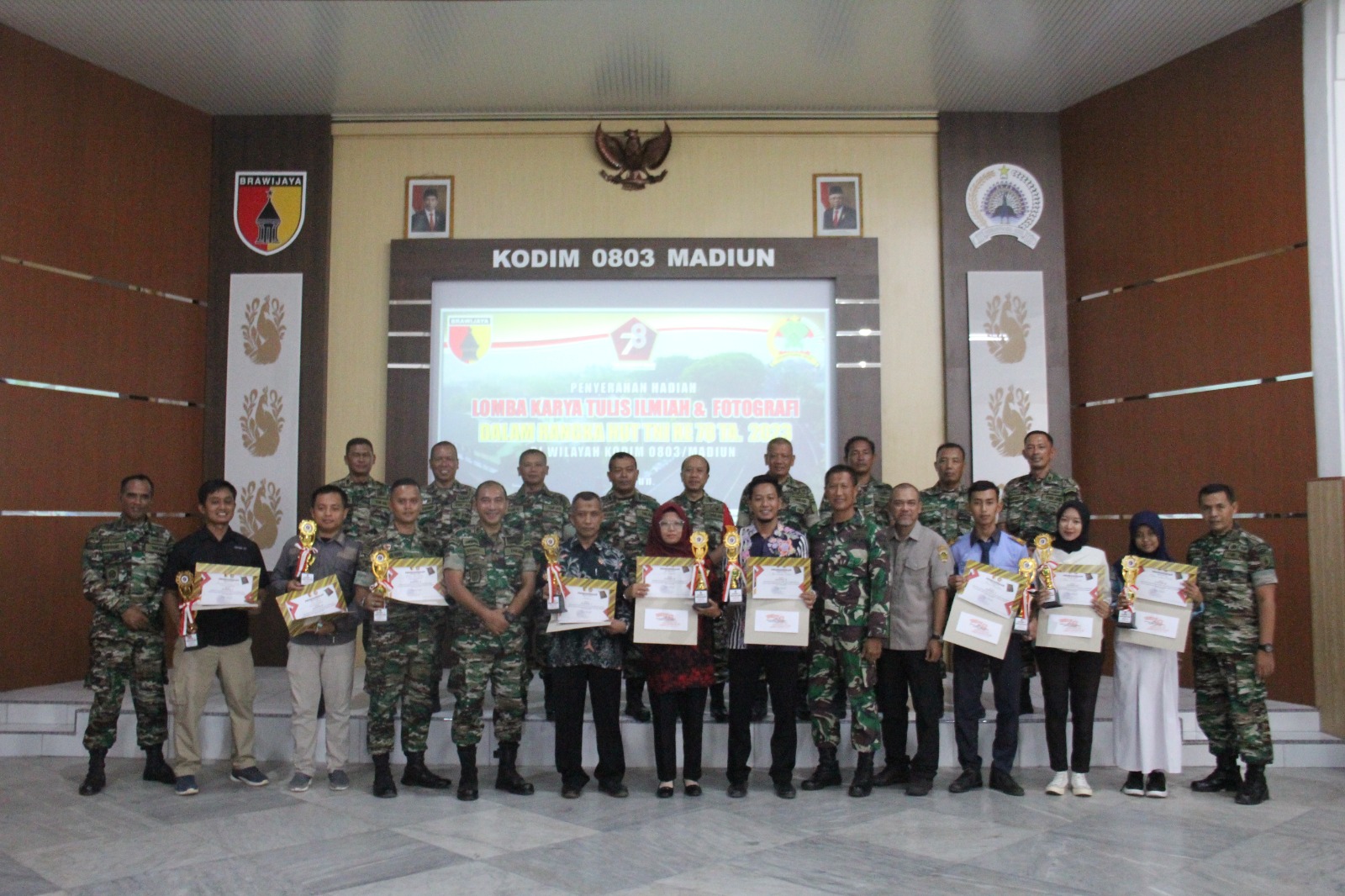 Hal itu di sampaikan oleh Dandim 0803/Madiun Letkol Inf Meina Helmi dalam sambutannya yang dibacakan Kasdim Mayor Inf Tommy Fedy Anugerahan, dalam acara penyerahan hadiah lomba fotografi dan karya tulis ilmiah dalam rangka memperingati HUT TNI ke-78 di Aula Makodim 0803/Madiun Jl. Pahlawan No. 25 Kel. Madiun Lor, Kec. Manguharjo, Kota Madiun, Kamis (5/10/2023).