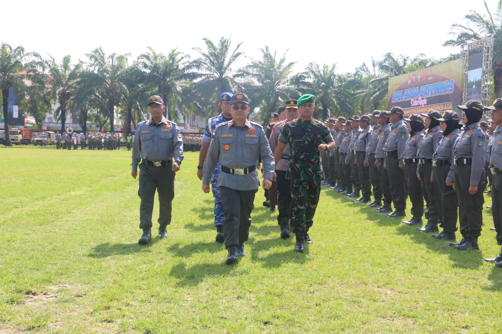 Madiun, 18 November 2024 – Dalam rangka mendukung kelancaran pelaksanaan Pemilihan Kepala Daerah (Pilkada) Tahun 2024, Dandim 0803/Madiun Letkol Kav Widhi Bayu Sudibyo bersama Forum Komunikasi Pimpinan Daerah (Forkopimda) Kota Madiun mengikuti Apel Siaga Satlinmas (Satuan Perlindungan Masyarakat) yang digelar di Alun-alun Kota Madiun, Senin (18/11). Apel siaga ini bertujuan untuk memastikan kesiapan seluruh personel yang akan terlibat dalam pengamanan Tempat Pemungutan Suara (TPS) dan posko Pilkada di wilayah Kota Madiun.