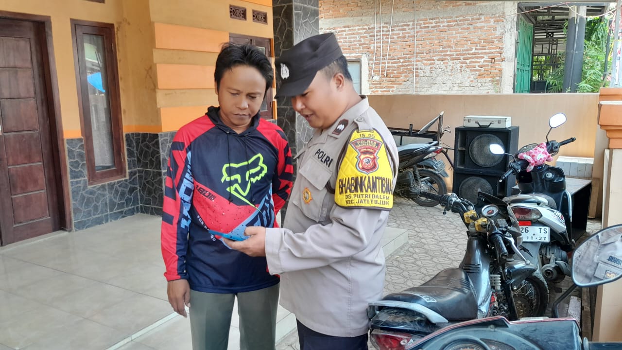 Majalengka, Dalam rangka implementasi program Quick Wins Presisi, Polsek Jatitujuh Polres Majalengka Polda Jabar melalui Bhabinkamtibmas Aipda Agus Arifin menjalankan kegiatan sosialisasi call center 110 sekaligus memberikan himbauan menjelang Pemilihan Umum 2024 kepada Sdr. Cecep Fahrudin di Blok Senin Desa Putridalem, Kecamatan Jatitujuh, Kabupaten Majalengka pada Minggu (28/01/2024).