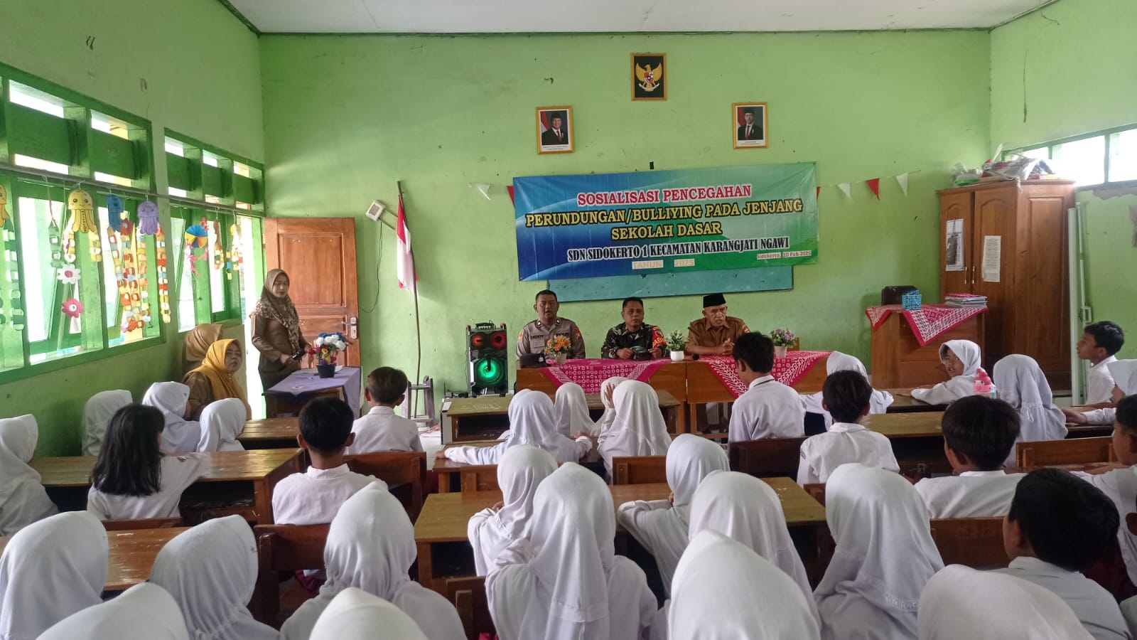 Ngawi,Buserjatim.com group- Anggota Koramil 0805/05 Karangjati Sertu Didik Wahyudi bersama Bhabinkamtibmas turun kewilayah binaan untuk melaksanakan kegiatan Wawasan Kebangsaan dan mensosialisaikan tentang kecintaan kepada tanah air serta tentang bahaya bullying, kegiatan tersebut dilaksanakan di SDN Sidokerto, Kec. Karangjati, Kamis (13/2/2025).