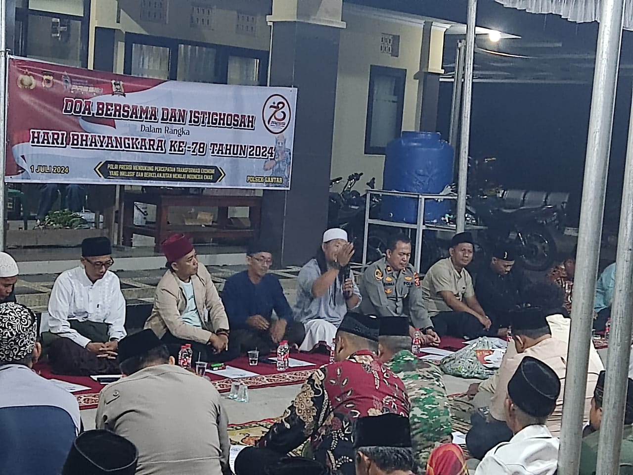 Indramayu, – Dalam rangka menyambut Hari Bhayangkara ke-78 Tahun 2024, Polsek Gantar jajaran Polres Indramayu Polda Jabar menggelar kegiatan Istighosah dan Doa Bersama di halaman Mapolsek Gantar, Blok Bantarwaru, Desa Mekarwaru, Kecamatan Gantar, Kabupaten Indramayu, Jumat malam (28/6/2024).
