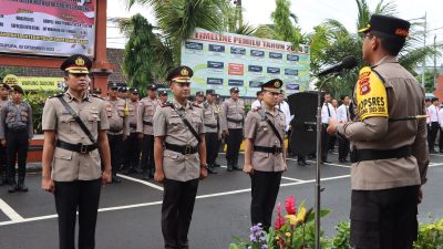 Kepala Kepolisian Resor Badung AKBP Teguh Priyo Wasono, S.I.K. pimpin upacara serah terima jabatan dan Penandatanganan Pakta Integritas yang dilaksanakan di lapangan Apel Polres Badung Jl. Kebo Iwa No. 1 Mengwitani Kecamatan Mengwi Kabupaten Badung, Bali. Sabtu (02/12) pagi pukul 08.30 Wita.