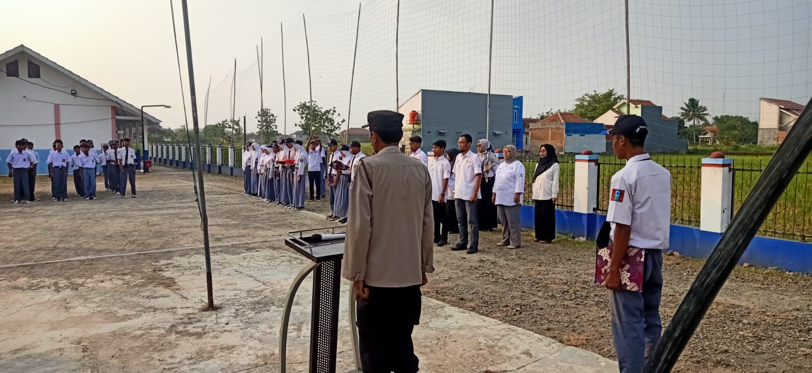Majalengka,- PS. Panit 1 Binmas Polsek Kdp Polres Majalengka Polda Jabar IPTU Darmorejo didampingi PS. Panit II Binmas AIPTU Aceng Santana menjadi Pembina upacara di SMK Karnas Kadipaten Kecamatan Kdp Kabupaten Majalengka. Selasa (25/07/2023).