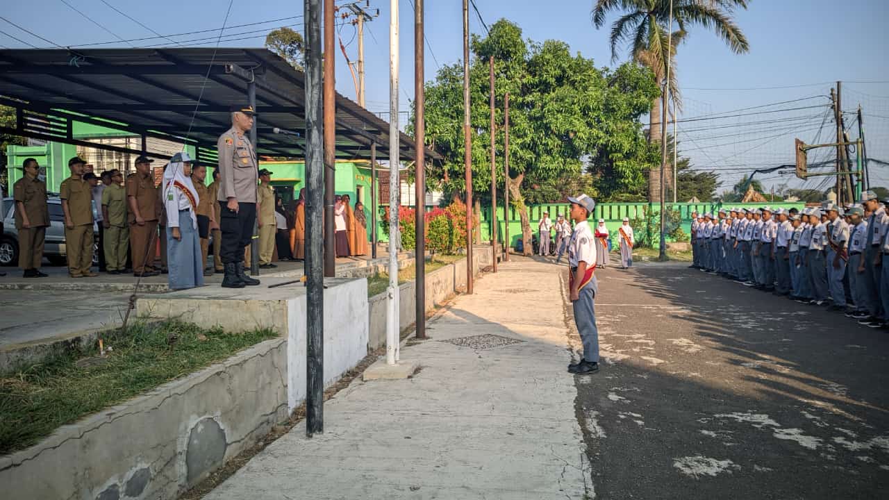 Majalengka, – Kapolsek Maja AKP Kenedy Joko Lelono bertindak sebagai pembina upacara bendera di SMKN 1 Maja, Kabupaten Majalengka, pada Senin (29/7/2024). Dalam kesempatan tersebut, AKP Kenedy Joko Lelono membacakan amanat dari Kapolres Majalengka, AKBP Indra Novianto, S.I.K., M.H., M.Si., CPHR, yang menekankan pentingnya tertib berlalu lintas dan menghindari tawuran.