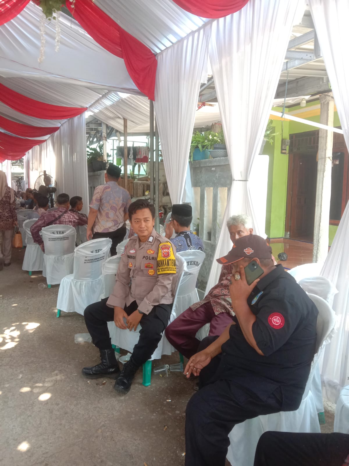 Bripka Warsidi Bhabinkamtibmas Desa Suranenggala lor hadiri forum diskusi group bersama Tomas dan warga desa Suranenggala lor dalam rangka halal bihallal hari raya idul Fitri 1445 H , Kamis (18/04/2024).