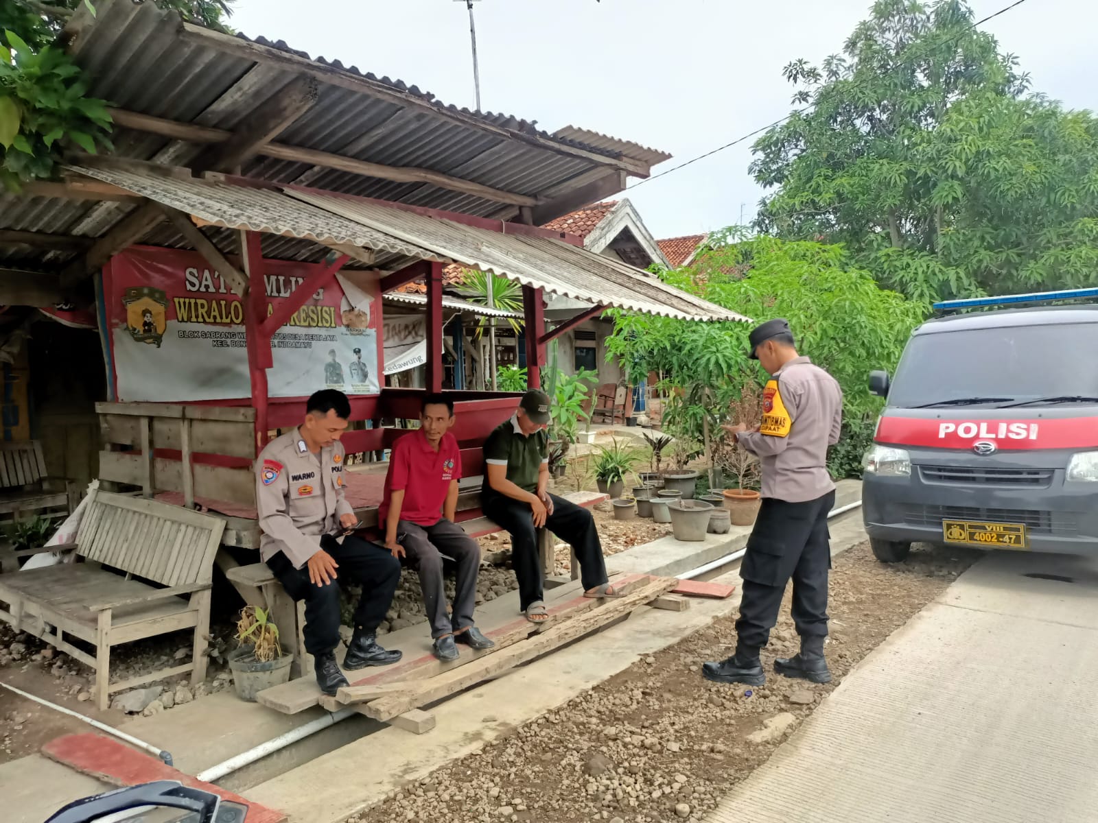 Dalam patroli tersebut, anggota polsek Bongas melakukan sambang dan dialog dengan petugas Satkamling Presisi Wiralodra.