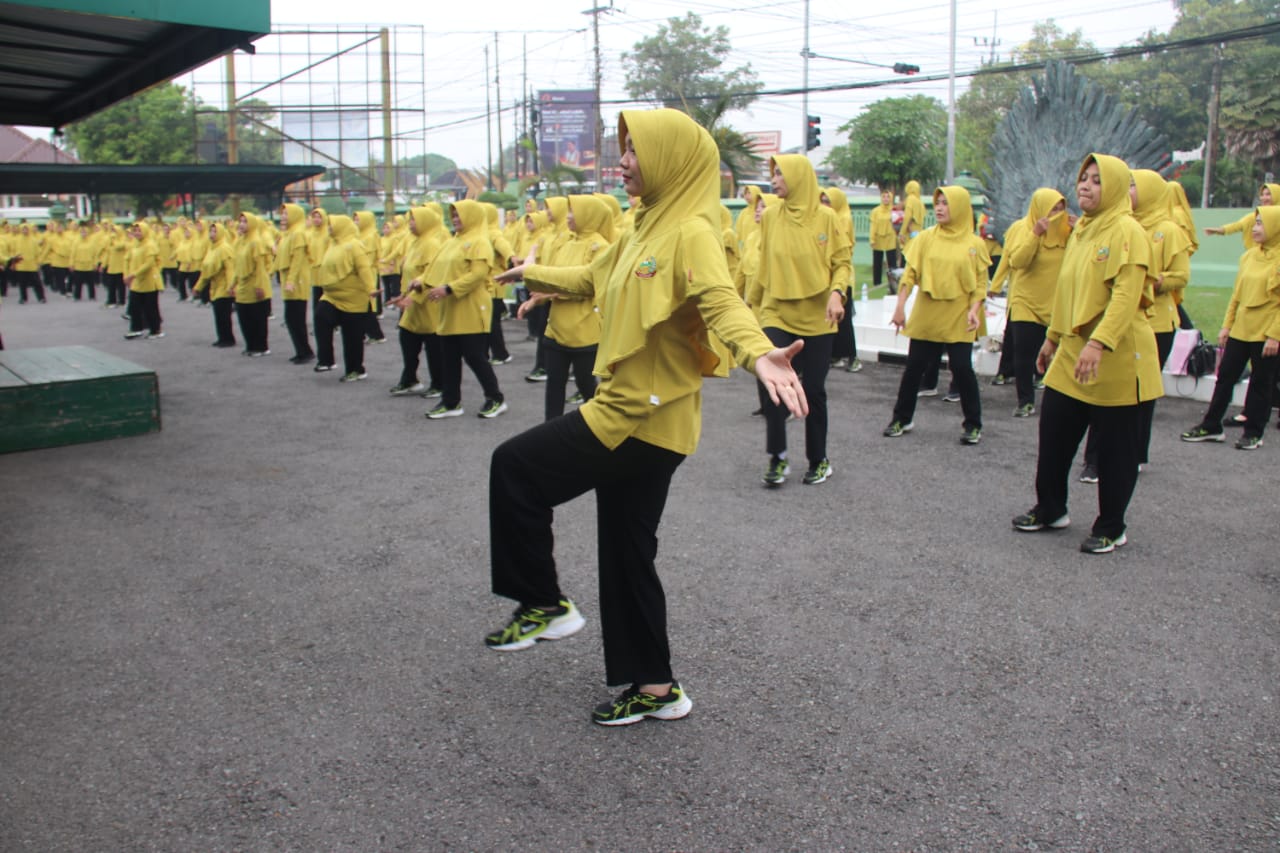 Jaga Kekompakan Dan Kebugaran, Persit KCK Kodim Ngawi Senam Bersama