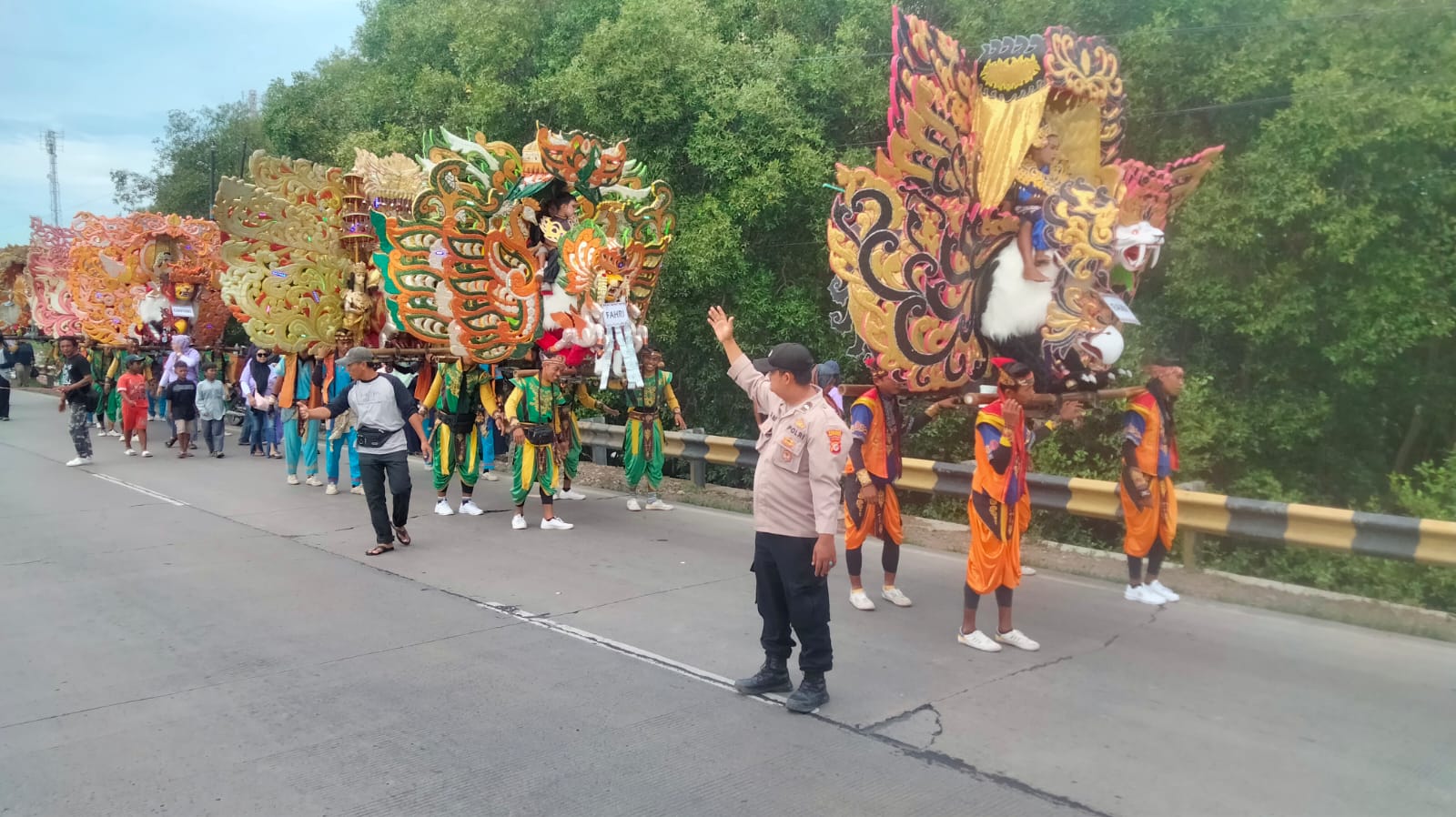 Jaga Kelancaran Kegiatan Masyarakat, Polsek Kandanghaur Polres Indramayu Gelar Pengamanan Arak-arakan Singa Depok di Desa Eretan Wetan