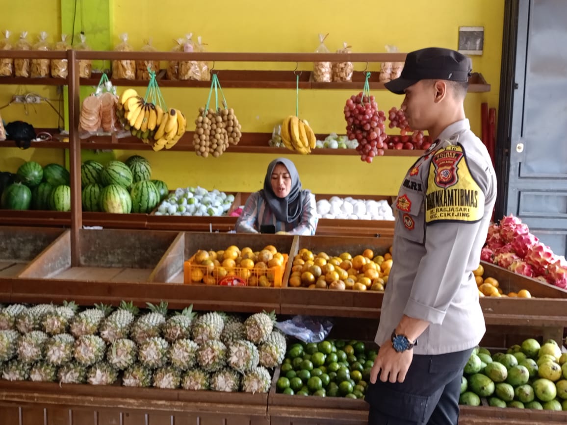 Majalengka – Guna membangun kemitraan antara anggota Polri dengan masyarakat demi terciptanya situasi kamtibmas yang aman dan kondusif, Bhabinkamtibmas Polsek Cikijing Polres Majalengka Polda Jabar, Briptu Pijar menyambangi penjual buah di Pasar Desa Cikijing ,Kecamatan Cikijing, Kabupaten Majalengka, Sabtu (02/09/2023).