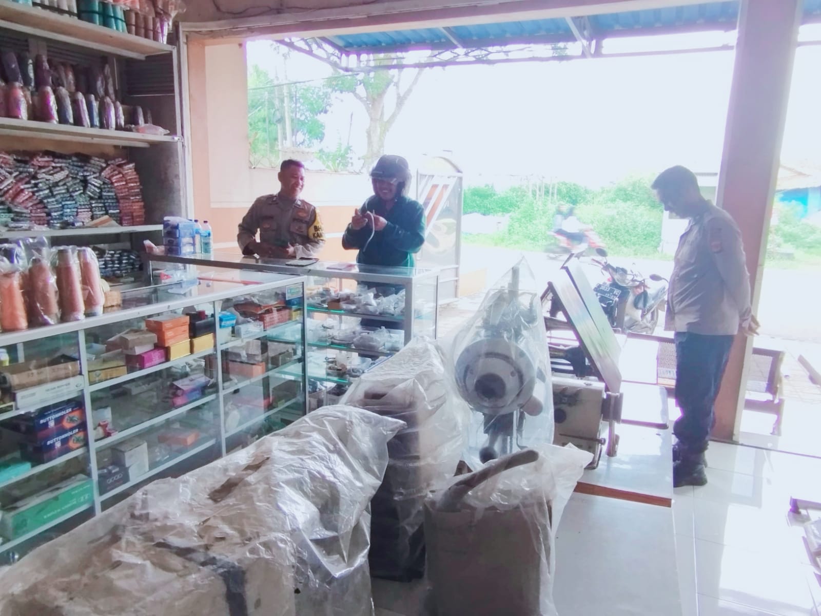 Majalengka – Bhabinkamtibmas Polsek Cikijing Polres Majalengka Polda Jabar, Aiptu Usin bersama Ka SPKT ll Aipda Mustopa melaksanakan patroli dan menyambangi Toko Alat Jahit yang berada di wilayah kecamatan Cikijing Kabupaten Majalengka, Senin (12/02/2024).
