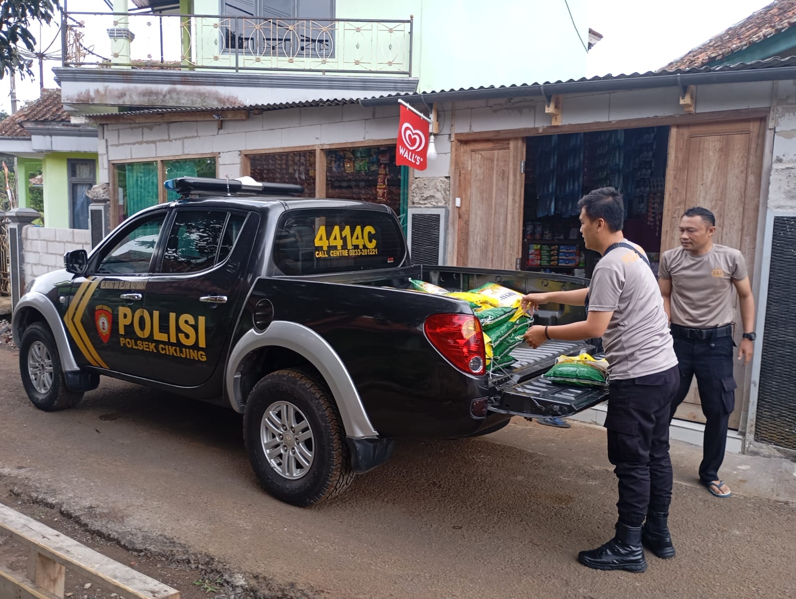 Majalengka – Bhabinkamtibmas Polsek Cikijing Polres Majalengka Polda Jabar Bripka Harry bersama Bripka Kurdiyanto melaksanakan penyaluran beras SPHP kepada warga desa Cilangcang, Kecamatan Cikijing, Kabupaten Majalengka, Jum’at (17/10/2025).