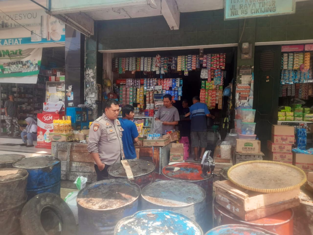 Majalengka – Bhabinkamtibmas Polsek Cikijing Polres Majalengka Polda Jabar, Bripka Dede Arif melaksanakan patroli ke toko Sembako dan memantau harga serta mengecek ketersediaan Sembako di pasaran, Rabu (12/07/2023).