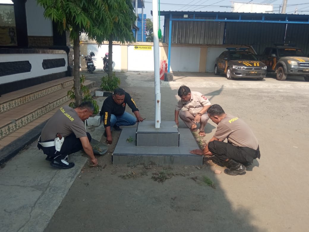 Majalengka – Jajaran Polsek Jatiwangi, Polres Majalengka, Polda Jabar melaksanakan kegiatan korve atau bersih-bersih lingkungan sekitar Mako Polsek Jatiwangi, Jumat (13/10/2023).