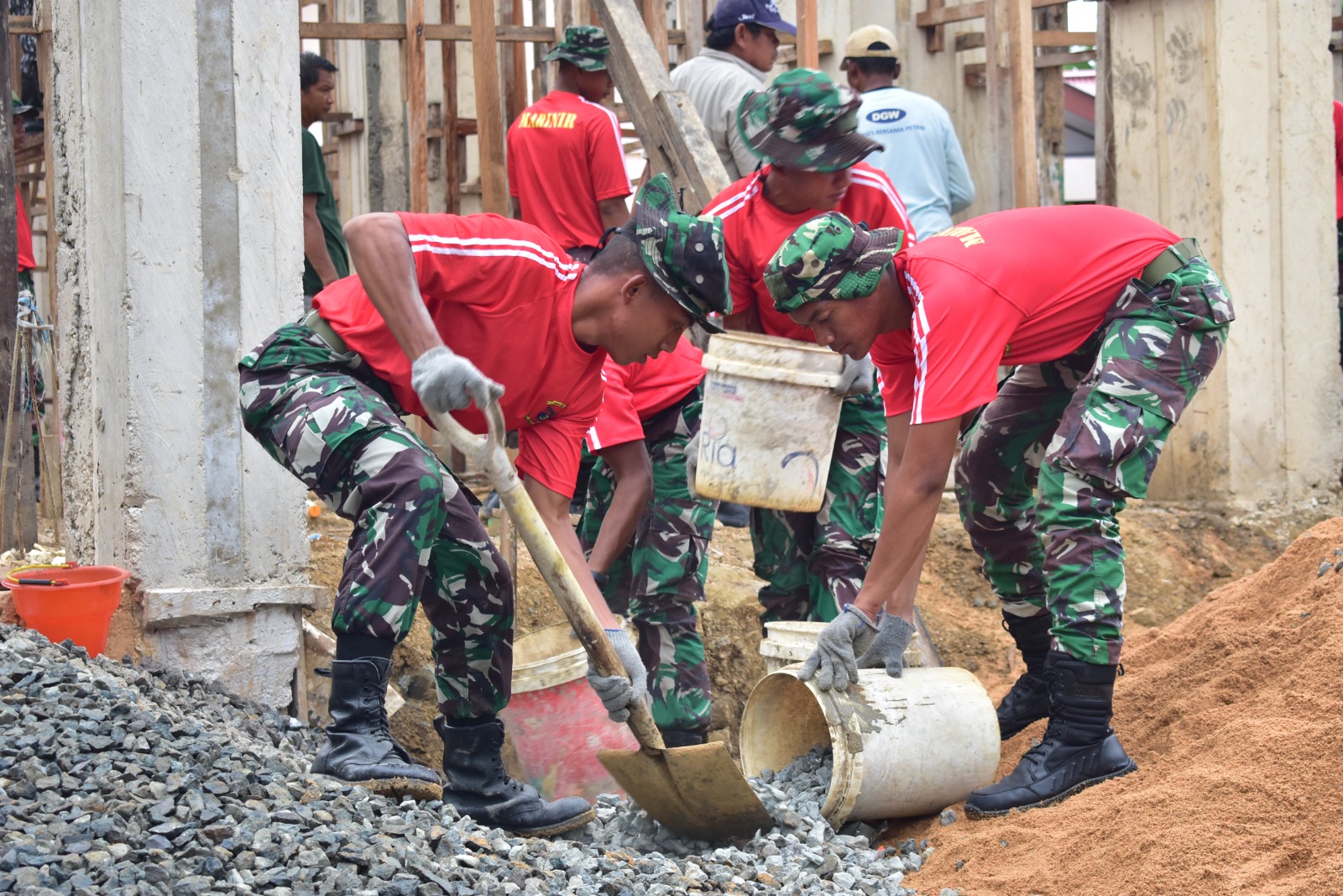 Kehadiran prajurit Pasmar 3 serta unsur TNI-Polri dalam membantu melaksanakan pengecoran pembangunan masjid memberikan warna tersendiri dan membangkitkan semangat masyarakat. Tanpa kenal lelah mereka bergotong royong bersama dalam suasana kekompakan dan keakraban.