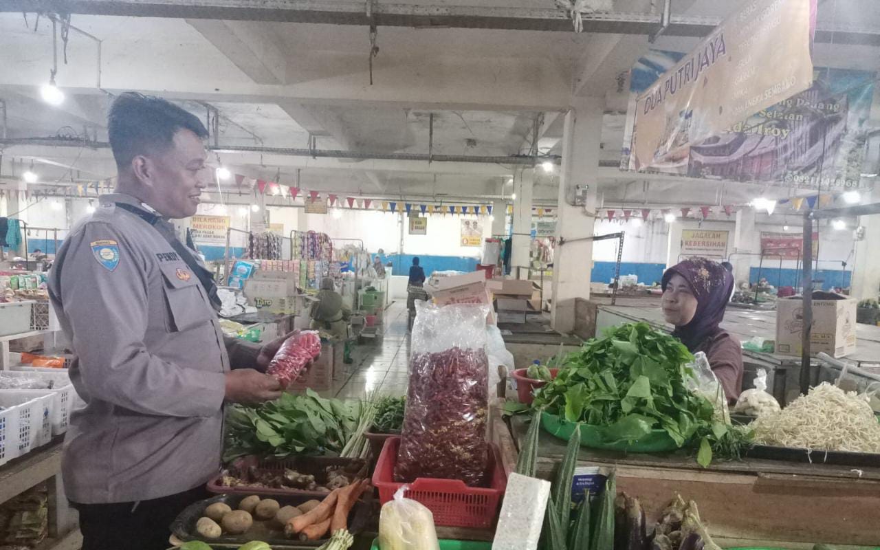 Bripka Pendy, Anggota Bhabinkamtibmas Kejaksan Polsek Utbar menyambangi pedagang di Pasar Pagi Cirebon Kota. sambang kali ini juga untuk meraih dan membangun hubungan emosional yang lebih baik lagi antara Polisi dengan masyarakat hingga tingkat yang paling bawah sekalipun. Senin (10.07.23)