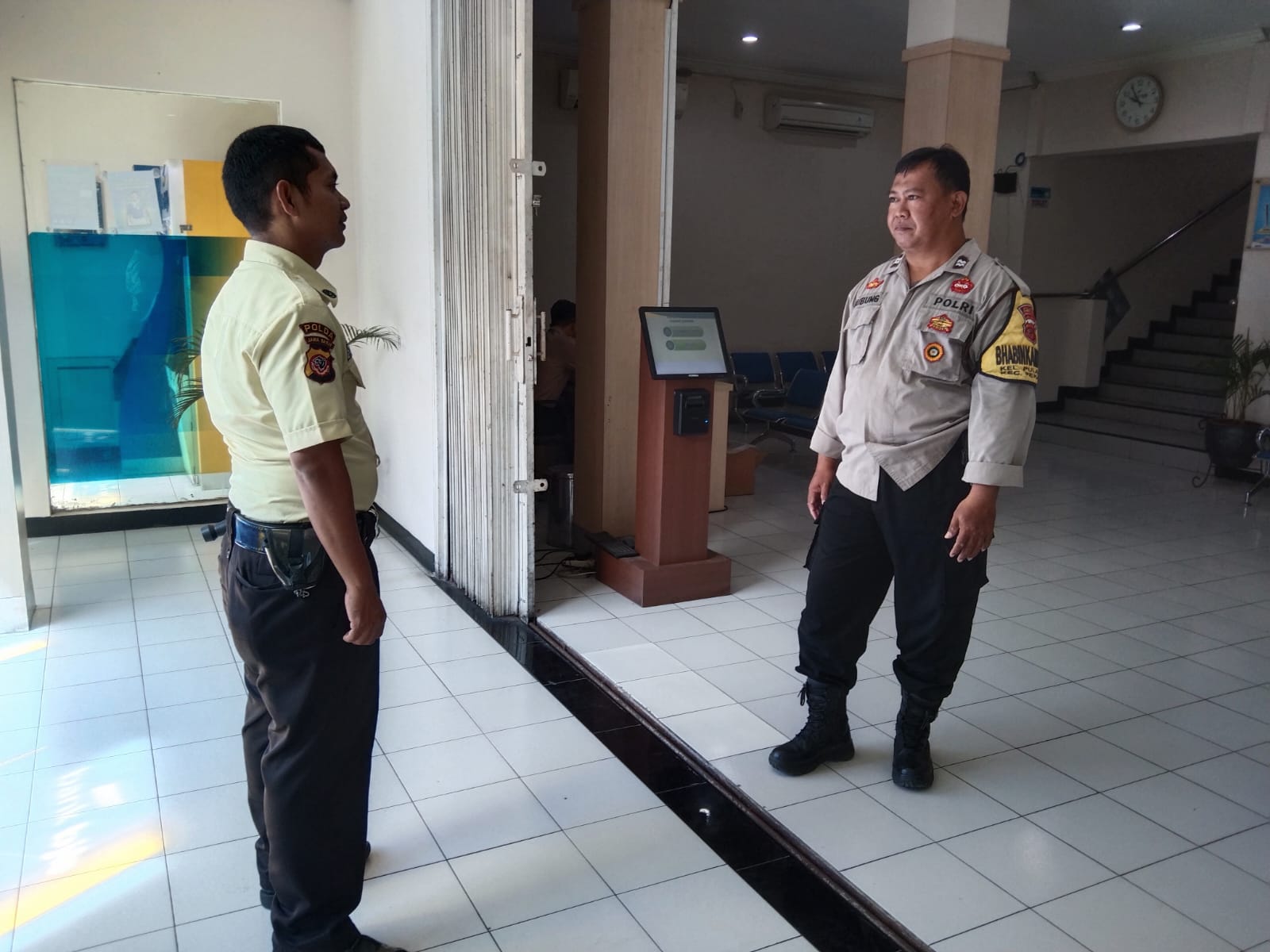 Bhabinkamtibmas pulasaren Aiptu Bubung sambang petugas satpam Bank BPR, ajak sinergi Kamtibmas , Sabtu (18/05/2024).
