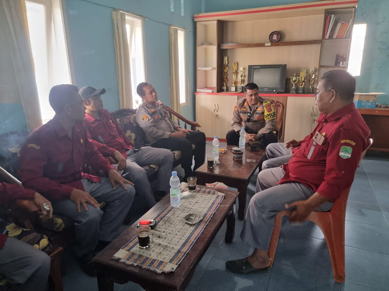kegiatan sambang dengan Perangkat desa ini bertujuan untuk mempererat tali silaturahmi dan meningkatkan sinergitas dalam menjaga kondusifitas Kamtibmas sekaligus untuk mendengarkan keluhan atau permasalahan warganya yang berada di desa tersebut sehingga bisa bersama-sama untuk di cari jalan keluarnya.