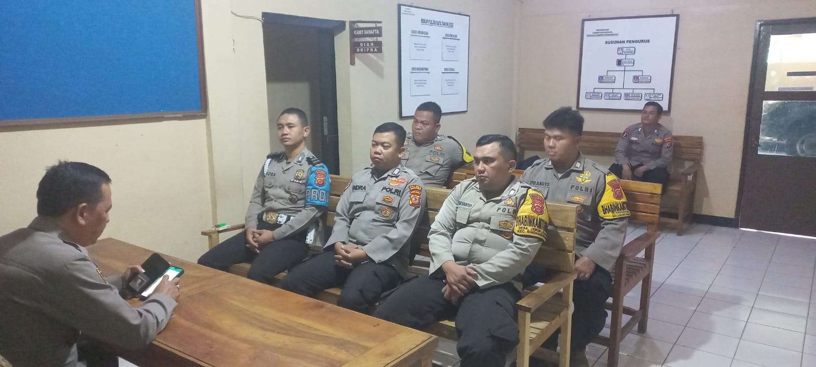 Majalengka, – Kapolsek Sindangwangi Polres Majalengka, IPTU Wili Rukwili, S.M., memimpin kegiatan arahan yang dilaksanakan di ruang aula Polsek Sindangwangi. Kegiatan ini dihadiri oleh Kasi, KSPK, para Kanit, serta Bhabinkamtibmas Polsek Sindangwangi.pada Jumat (8/9/2023).