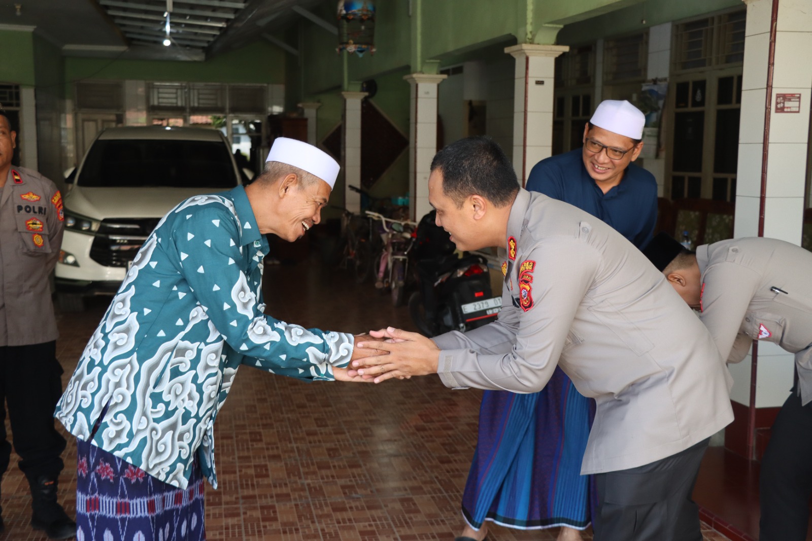 Kegiatan Kunjungan Silaturahmi Kapolres Cirebon Kota AKBP M. Rano Hadiyanto S.I.K., M.M. beserta Jajaran didampingi Kapolsek Seltim Fiekry Adi Perdana S.I.Kom Dengan H.Hasanain LC dan Ketua FKUB usust.H.Abdul Hamid S.Pd.i bertempat di kediaman Ketua MUI Kota Cirebon Jl.Jagasatru Kelurahan Jagasatru Kelurahan Jagasatru Kecamatan Pekalipan Kota Cirebon.