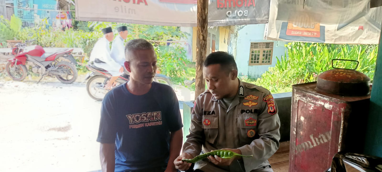Polda Jabar–Polres Bogor, Bhabinkamtibmas Desa Cibeber II Kecamatan Leuwiliang Kabupaten Bogor, Polsek Leuwiliang Bripka Reza Rahmadani melakukan sambang dan silaturahmi dengan masyarakat atau tokoh pemuda Kampung Angsana Desa Cibeber II sembari menyampaikan pesan – pesan kamtibmas, Sabtu (05/08/23).