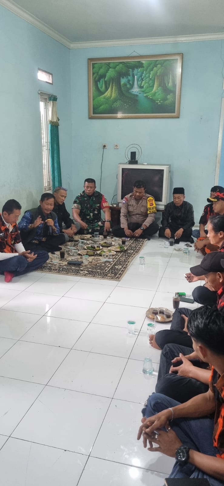 Bhabinkamtibmas dan Babinsa melakukan giat Cooling sistem melalui kunjungan langsung ke warga Organisasi Pemuda Pancasila Ranting Desa Sukadamai Kecamatan Dramaga Kabupaten Bogor dalam upaya untuk mempererat hubungan antara aparat kepolisian dan masyarakat setempat