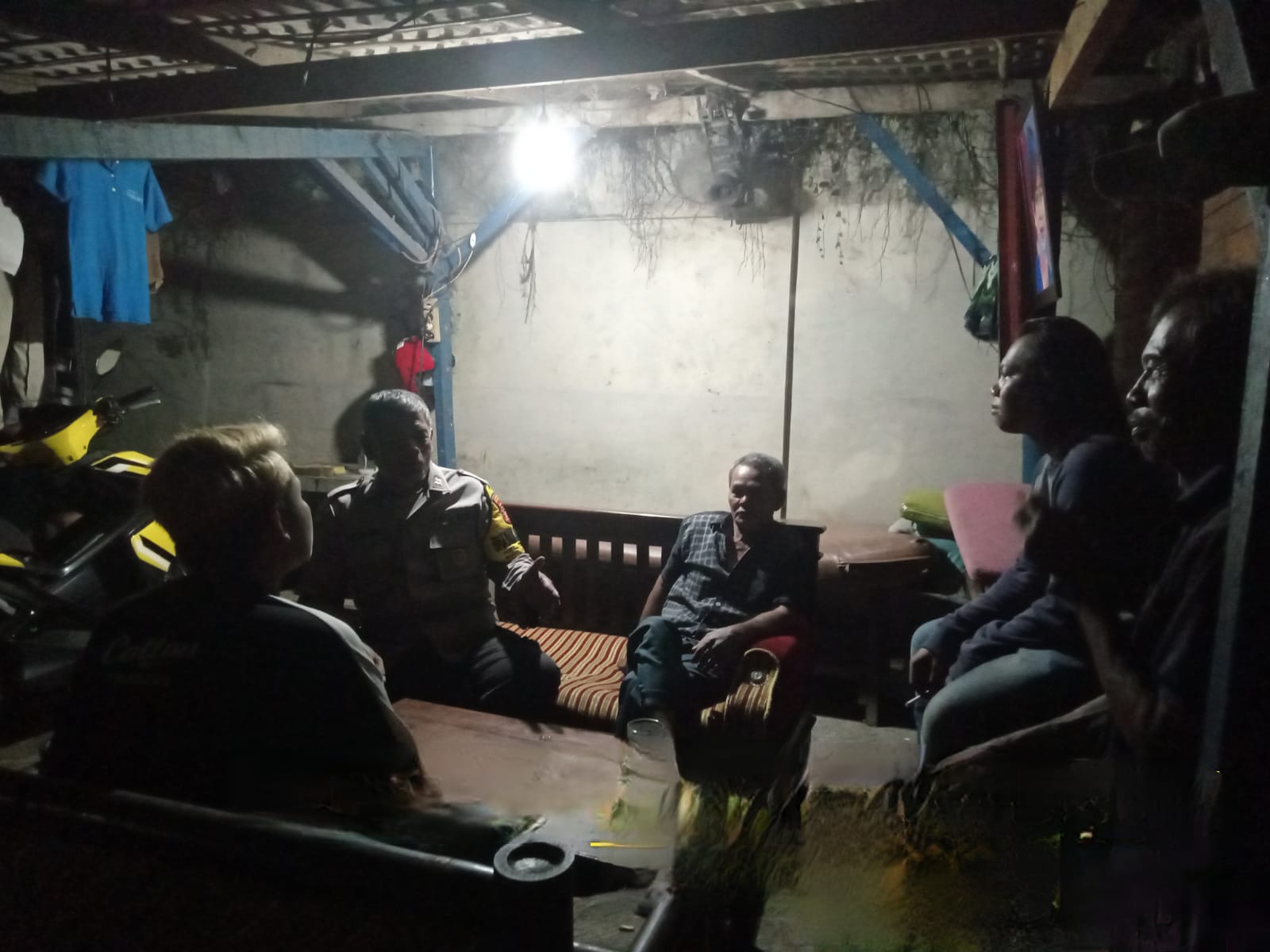 Bhabinkamtibmas Kelurahan Kesambi AIPTU Ade Wardaya , menyatu bersama warga melalui melalui patroli dialogis di RW 03 sigendeng kesambi ajak bersama-sama jaga kondusiitas lingkungan dalam Tahun politik, Jum’at malam (16/08/2024).