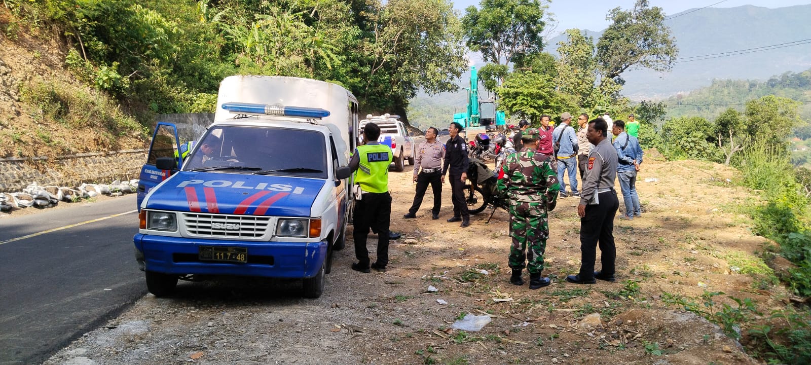 “Di musim penghujan beberapa waktu lalu, longsoran tanah menutup badan jalan bahkan bencana ini menewaskan seorang pengguna jalan akibat tertimbun material longsor,” pungkas Kapten Inf Nana Rusmana. (Pendim_0617)