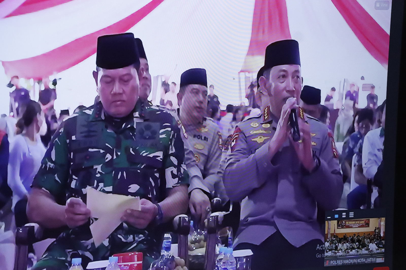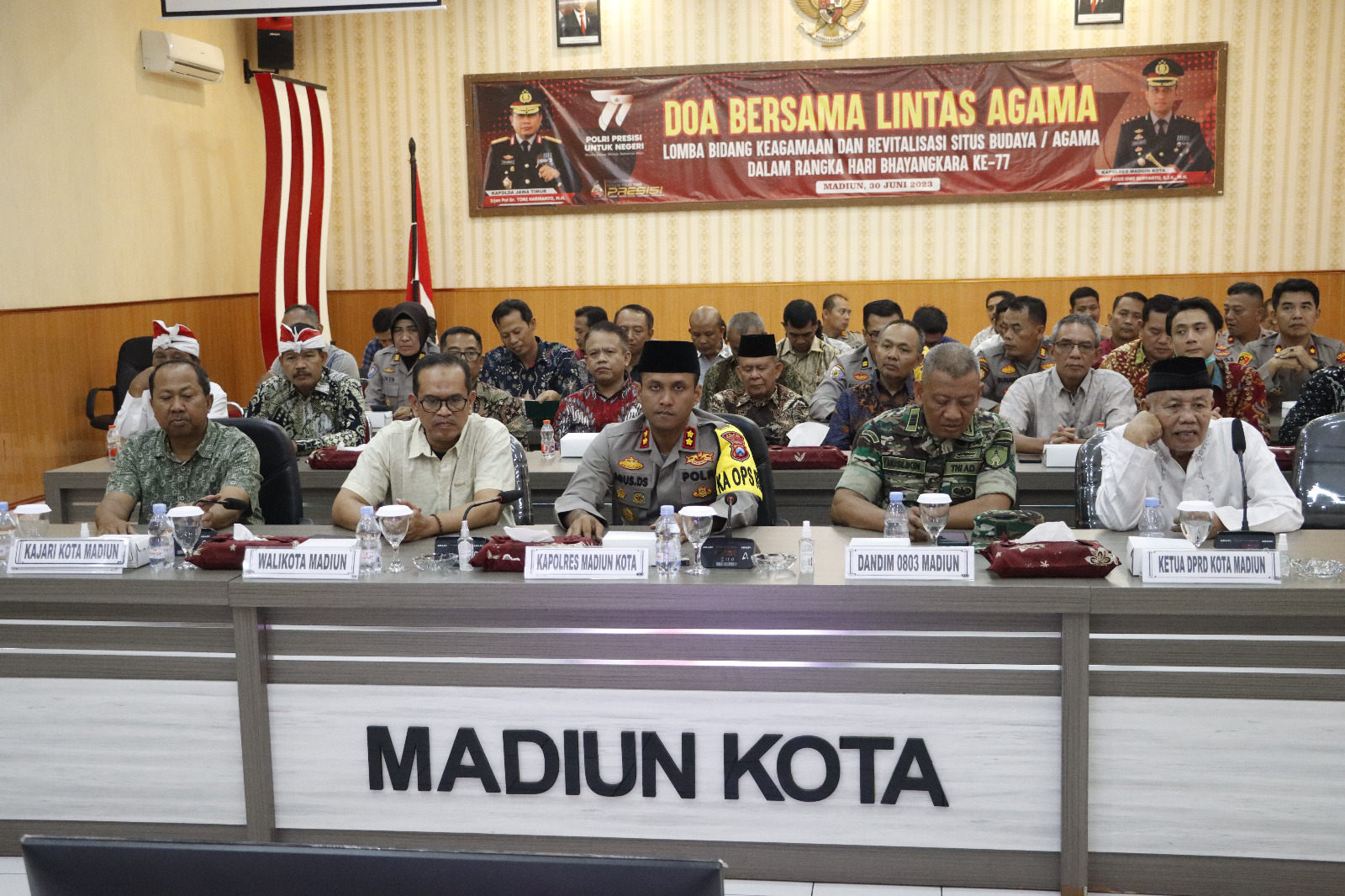 Dengan zoom meeting doa bersama lintas agama secara nasional tersebut dilaksanakan di Gedung Sunaryo serta diikuti oleh Kapolres Madiun Kota, Jajaran Forkopimda, Ketua FKUB Kota Madiun dan Perwakilan 6 (enam) tokoh agama se Kota Madiun. Jumat (30/6/2023).