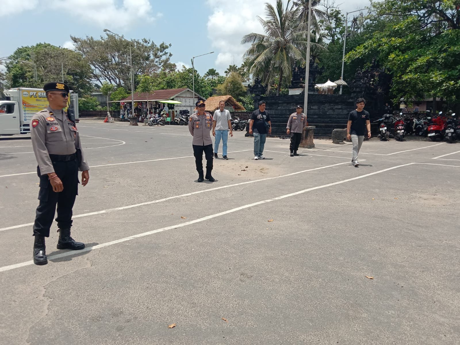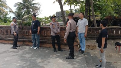 Tampak Personil yang terlibat KRYD menyampaikan pesan – pesan kamtibmas kepada pengunjung obyek wisata Petitenget Kerobokan Kelod agar terhindar dari korban aksi kejahatan.