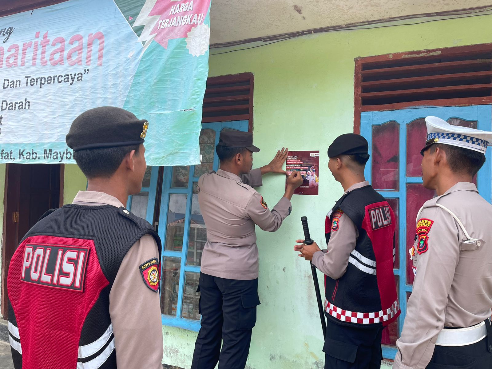 Saat menggelar pemasangan stiker himbauan Kamtibmas di berbagai titik strategis yang berada di Kabupaten Maybrat. Selain itu juga, di lakukan pemasangan banner himbauan kamtibmas yang di pasang di Polsek jajaran.