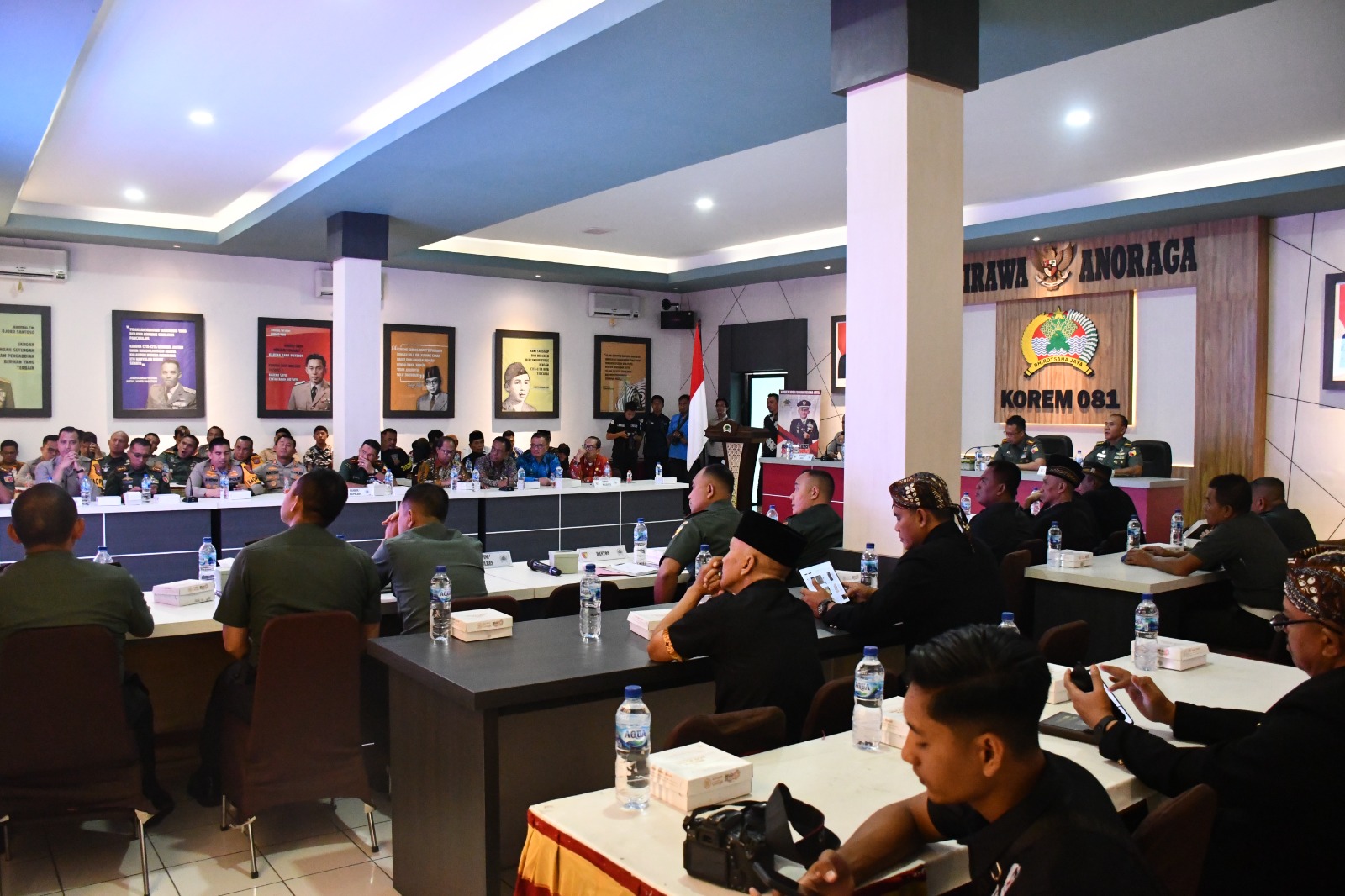 “Kami jajaran Korem 081/DSJ siap membantu dan bekerjasama dengan Polres dan pemerintah daerah untuk menyukseskan agenda Suroan dan Suran Agung agar berjalan aman, tertib, dan lancar. Serta memberikan rasa aman dan nyaman bagi masyarakat,” kata Danrem 081/DSJ Kolonel Inf Rama Pratama dalam sambutannya dalam Rakor kesiapan pengamana Suroan dan Suran Agung di Ruang Command Center Makorem, Jl. Pahlawan No. 50 Kota Madiun, Kamis (20/6/2024)