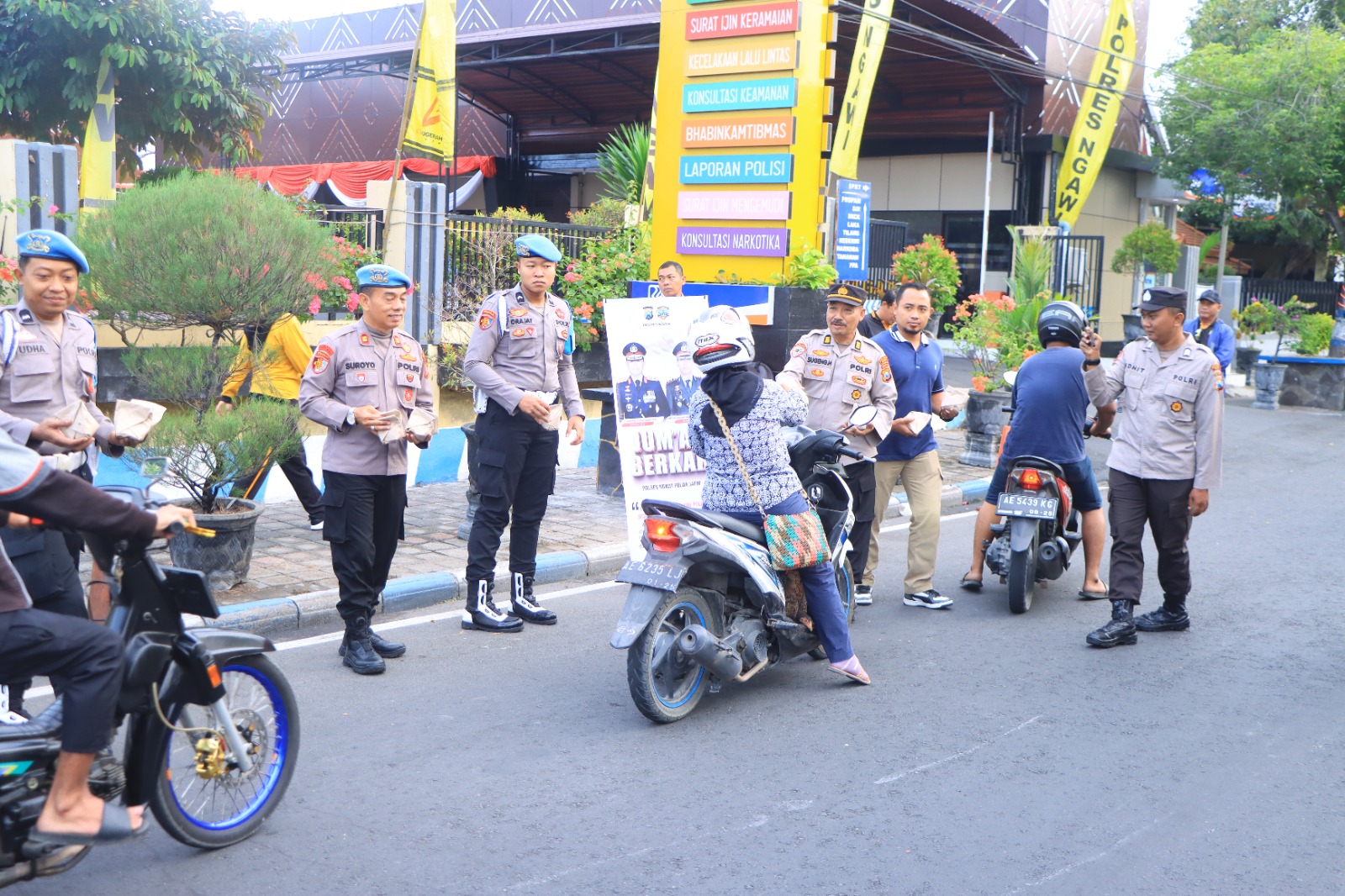 NGAWI,BUSERJATIM.COM GROUP – Puluhan pemakai jalan raya yang melintas di depan Polres Ngawi Jl. JA Suprapto Ngawi, menjadi sasaran kegiatan Jumat Berkah personel Polres Ngawi Polda Jatim, pada Jumat (9/8/2024).