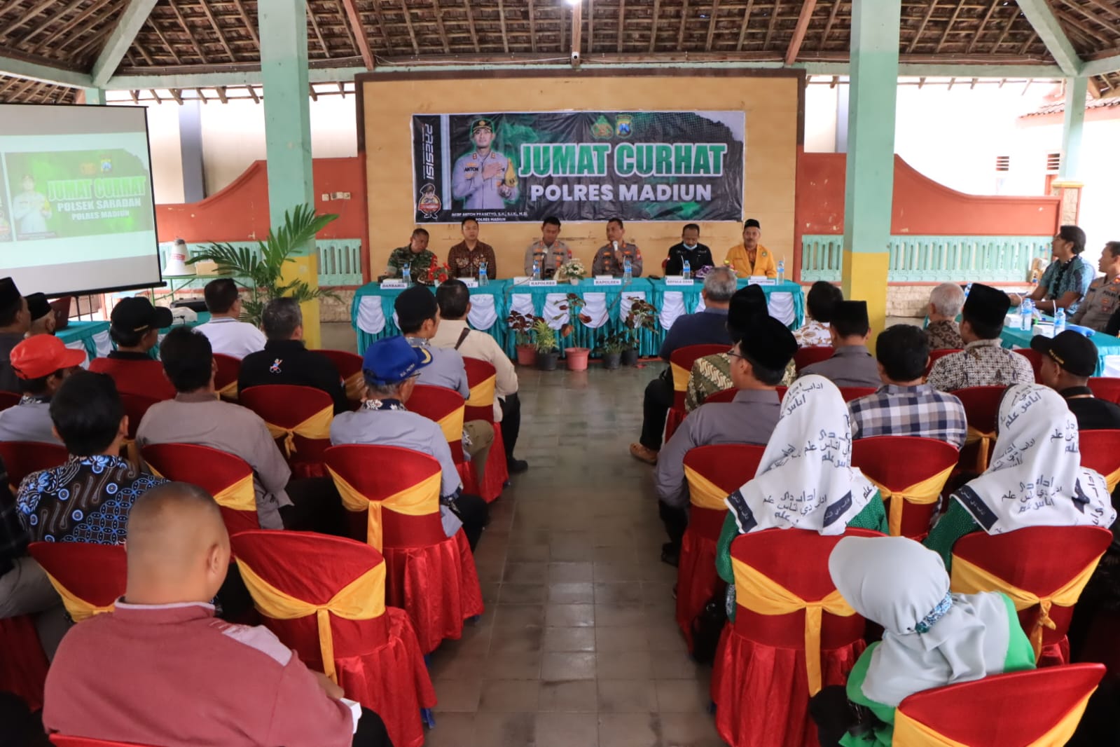 Polres Madiun, BUSERJATIM. COM – Kapolres Madiun AKBP Anton Prasetyo bersama Pejabat Utama Polres Madiun menggelar Jumat Curhat yang bertempat diBalai desa Sugihwaras Kec. Saradan Kab. Madiun, Jumat (24/2/2023).