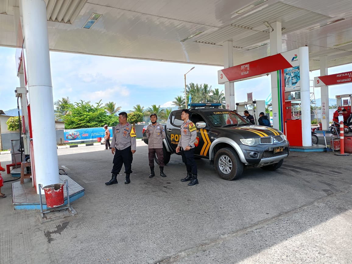 Ka SPKT l dan Bhabinkamtibmas Polsek Cikijing Rutin Melaksanakan pengamanan Dan Monitoring Di SPBU.