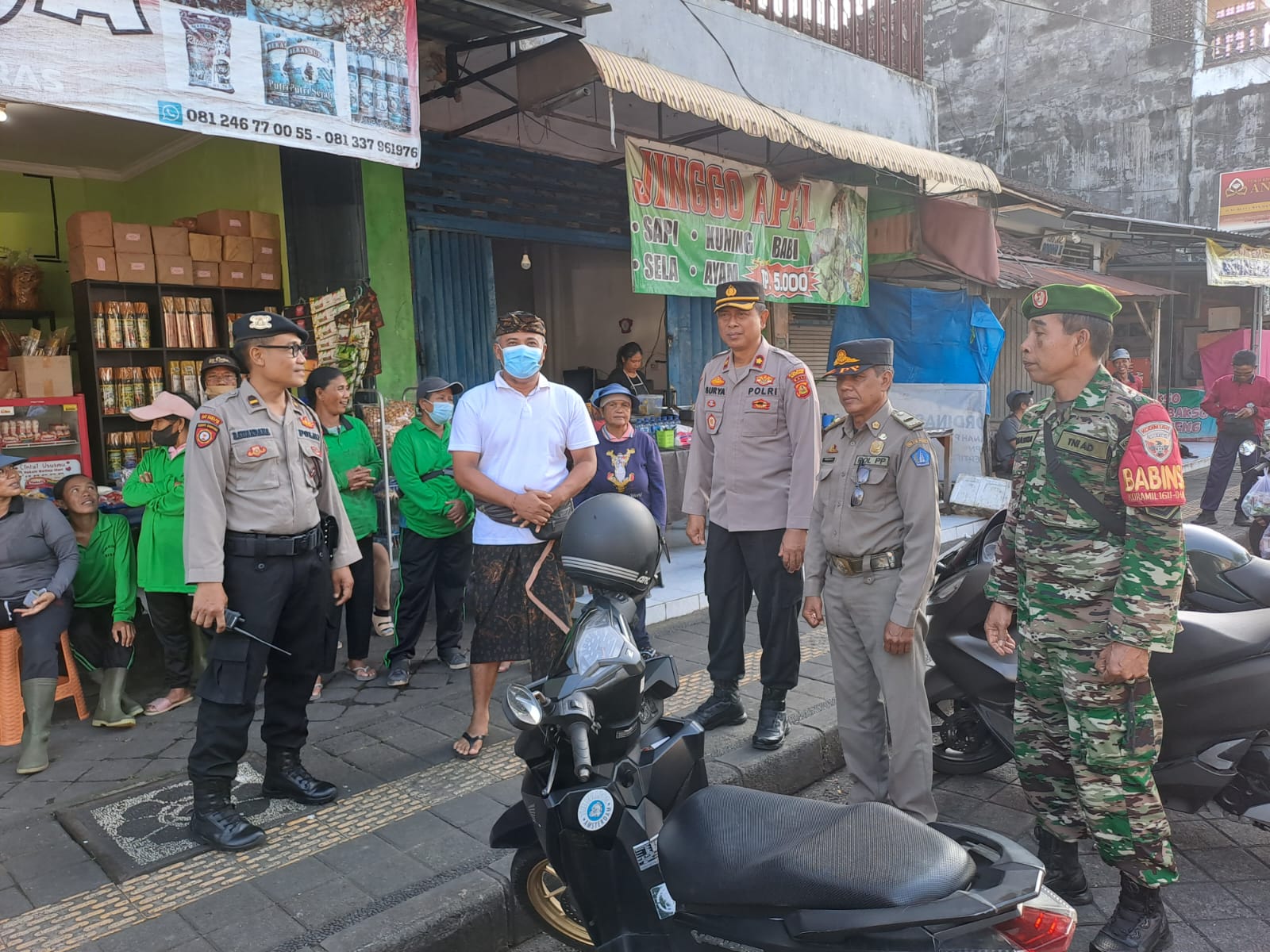 “Kita adakan patroli gabungan kolaborasi dan sinergi dengan instansi terkait yakni TNI dan Satpol PP Kabupaten Badung dengan sasaran berbagai lokasi keramaian yakni pasar tradisional Kapal dan pasar tradisional Semat Desa Tibubeneng Kecamatan Kuta Utara Kabupaten Badung,” ungkap pria kelahiran Tabanan 52 tahun silam tersebut.
