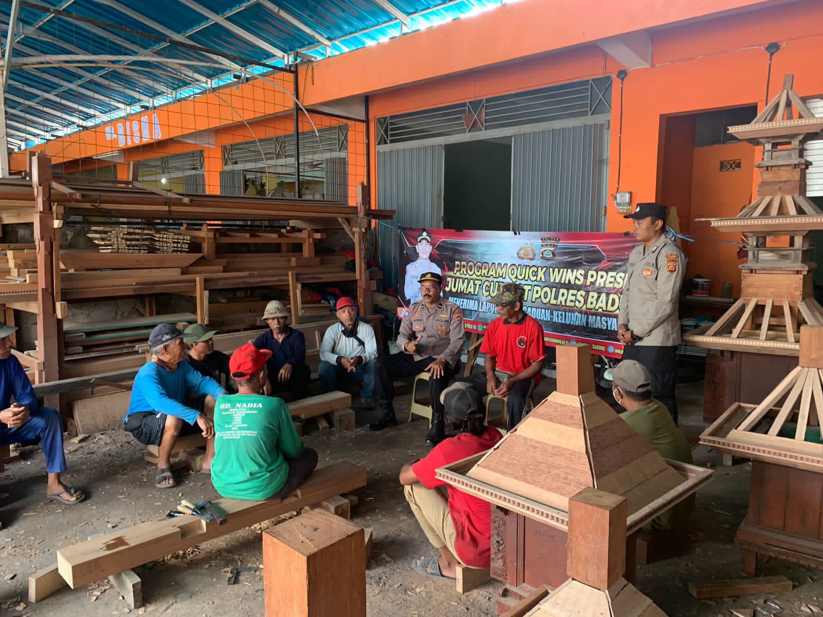 Kanit Bhabinkamtibmas Polres Badung Ipda I Wayan Cok Yudyawan melaksanakan Jumat Curhat di Kios Kerajinan Kayu, tepatnya depan Terminal Mengwi Kecamatan Mengwi, Kabupaten Badung, Bali. Jumat, (13/10) pagi 09.00 WITA.