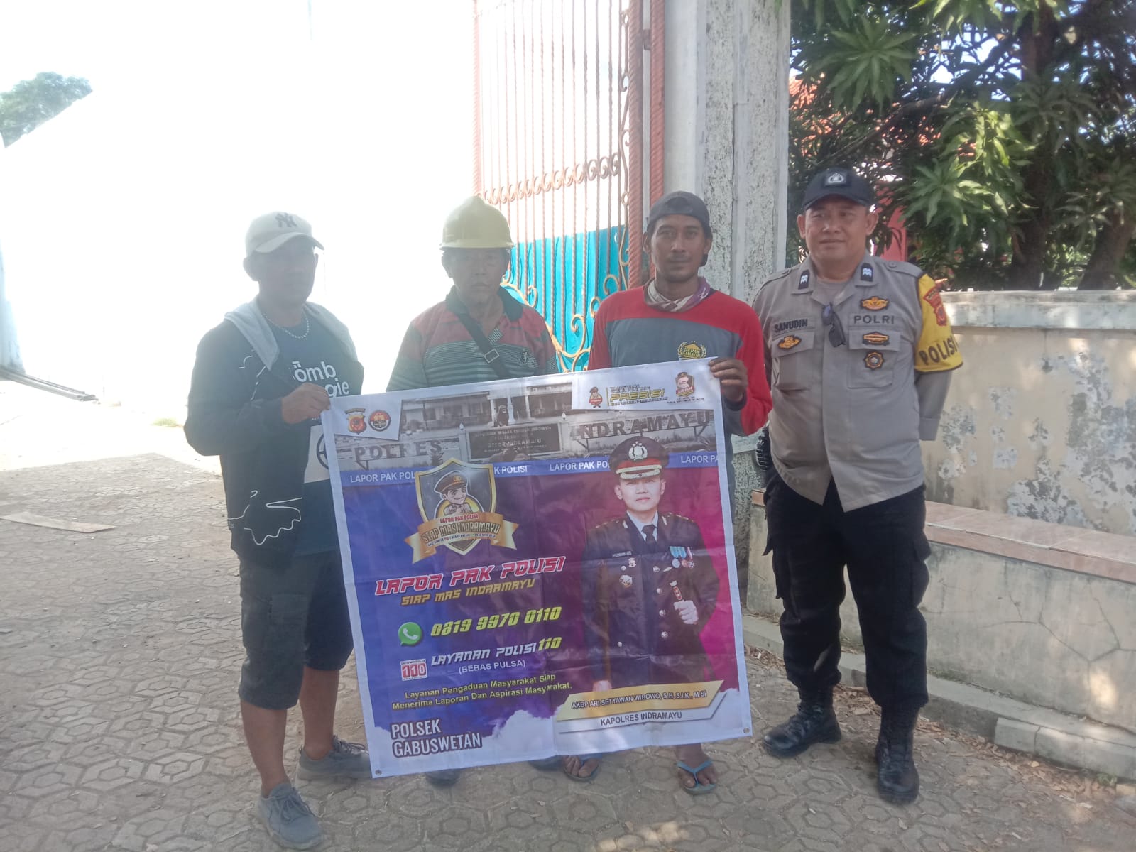 Dalam kegiatan tersebut, petugas Polsek Gabuswetan melaksanakan pemasangan stiker Yandumas yang berisi tulisan “LAPOR PAK POLISI, SIAP MAS INDRAMAYU” dan mencantumkan informasi mengenai layanan kepolisian Polres Indramayu yang dapat diakses melalui WhatsApp di nomor 0819 9970 0110 serta Call Center 110 tanpa pulsa.