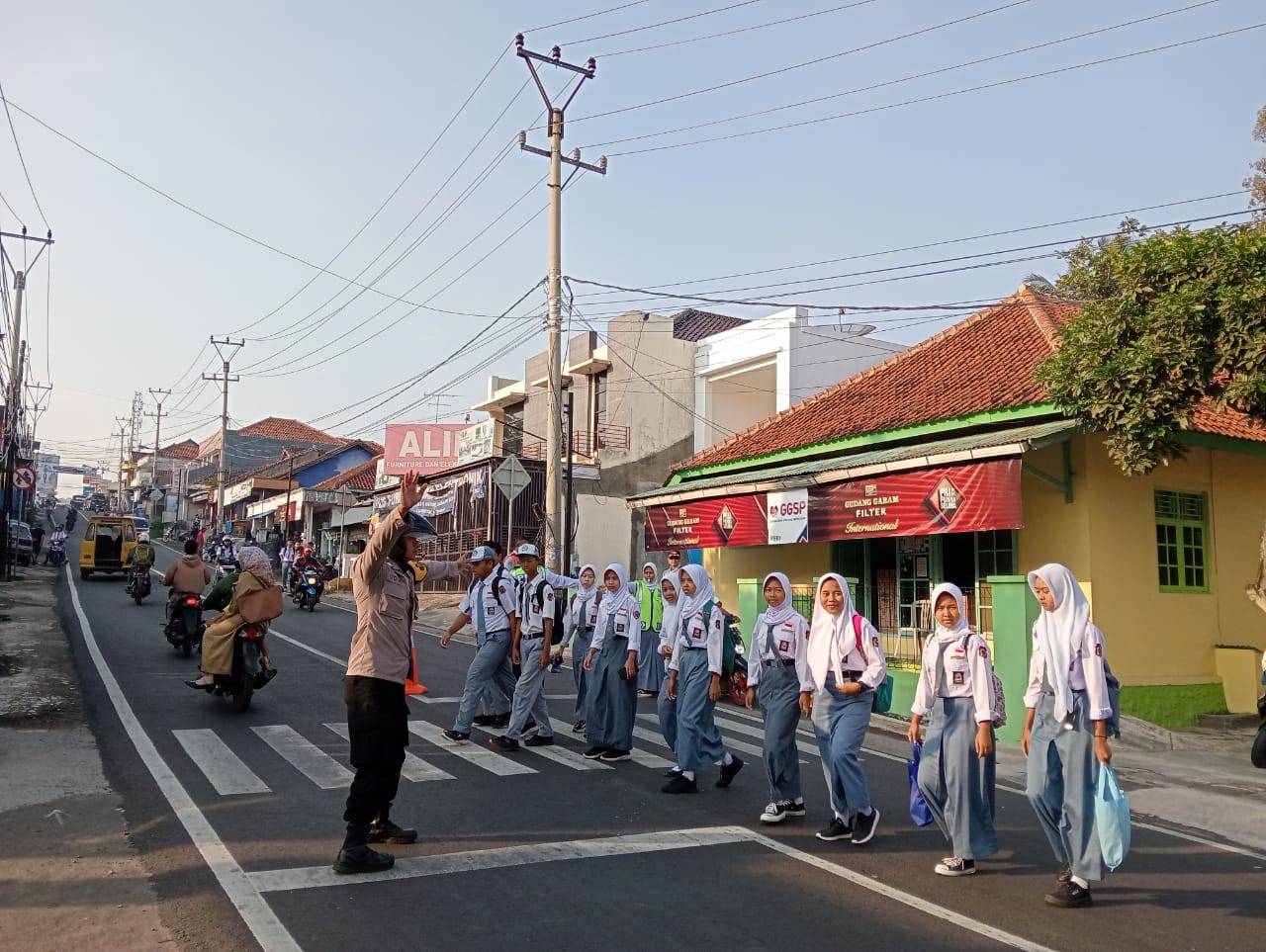 Majalengka, Dalam upaya meningkatkan keselamatan anak-anak sekolah di wilayah hukumnya, Kanit Binmas Polsek Maja,Polres Majalengka,Polda Jabar, Bripka Sahabudin, aktif terlibat dalam pengaturan lalu lintas dan membantu menyeberangkan anak sekolah di Jalan Maja-Banjaran, Kabupaten Majalengka, pada Senin (29/1/2024).