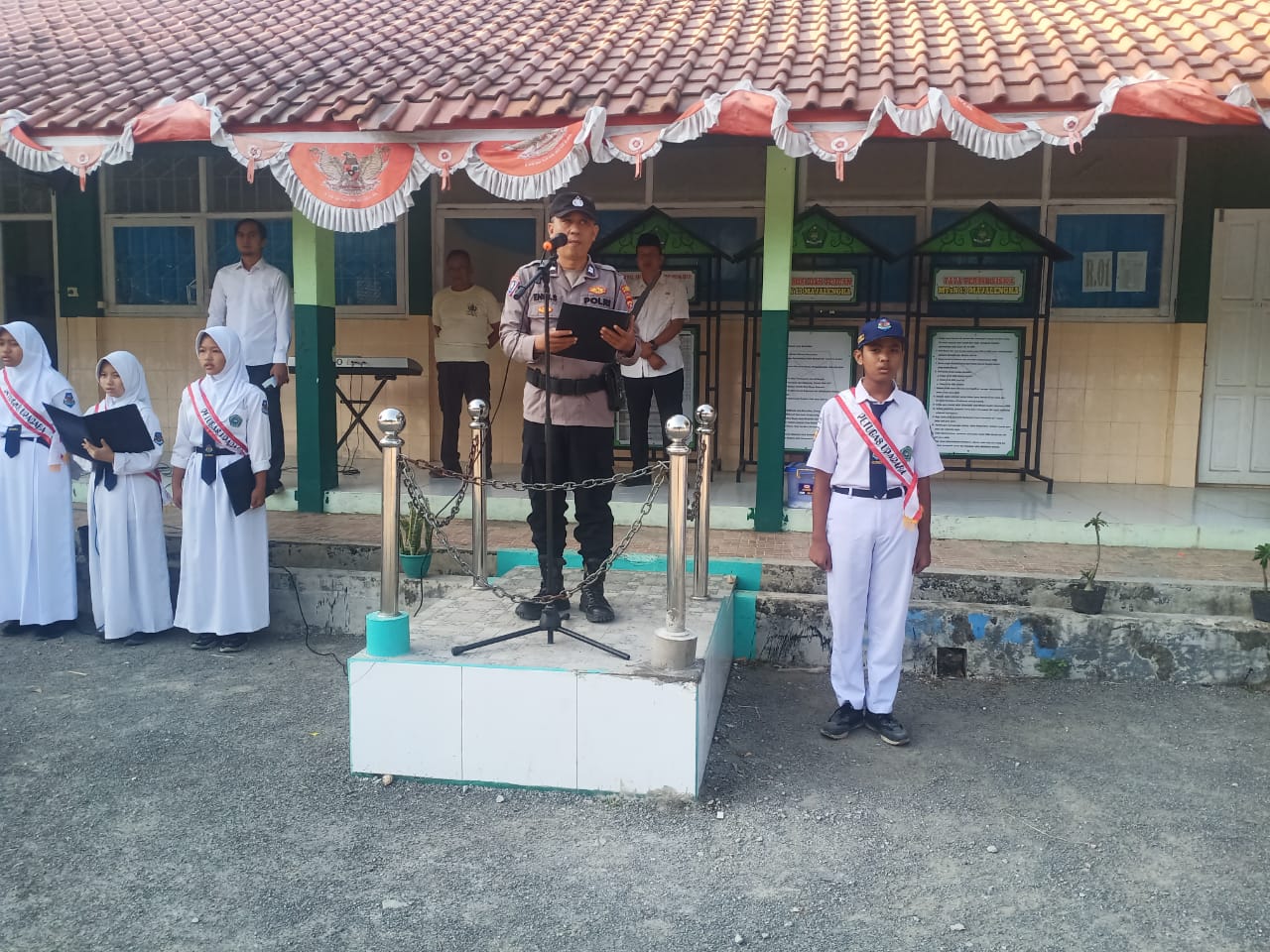 Majalengka – Kanit Binmas Polsek Palasah, Polres Majalengka, Polda Jabar, Aiptu Endi Sanjaya, S.H., bertugas sebagai pembina upacara di MTSN 13 Majalengka, Desa Weragati, Kecamatan Palasah, Kabupaten Majalengka, pada Senin (19/8/2024).