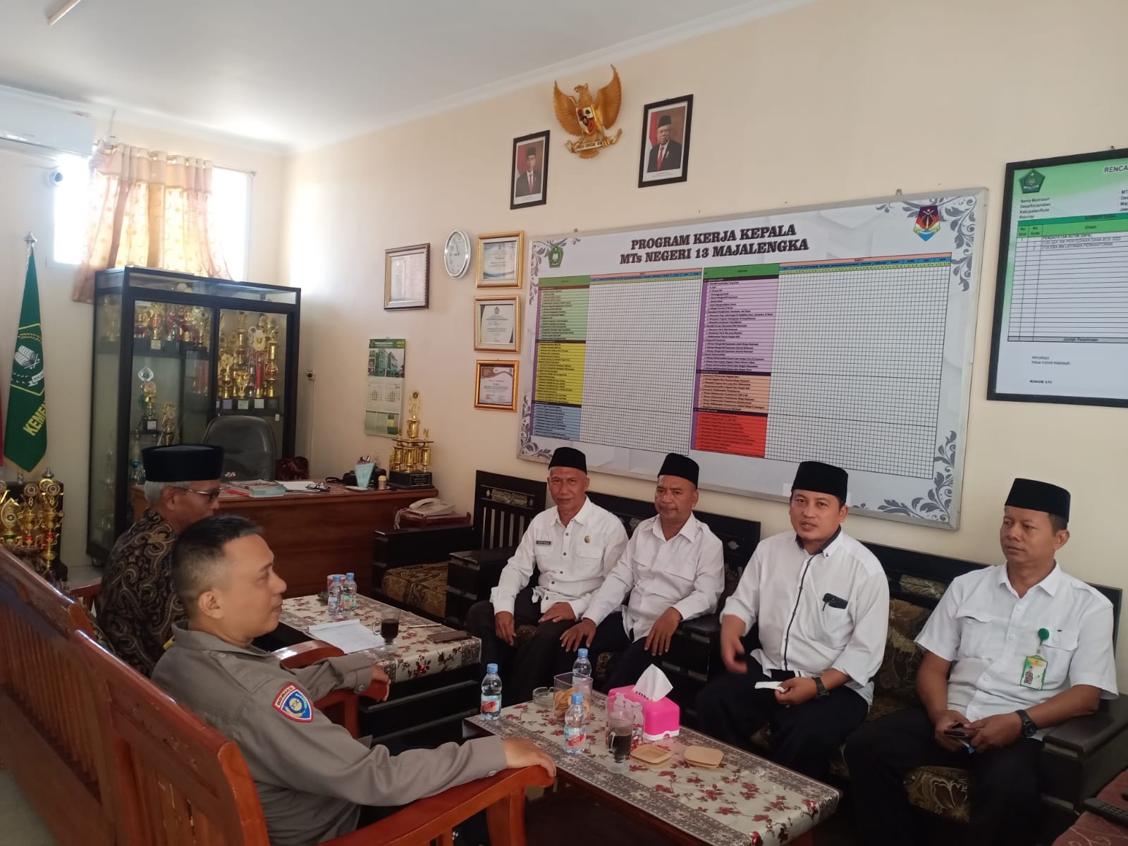 Majalengka,- Dalam semangat menjaga keamanan dan ketertiban di wilayahnya, Kanit Binmas Polsek Palasah Polres Majalengka, Aiptu Endi Sanjaya, SH, melaksanakan kunjungan ke Madrasah Tsanawiyah Negeri (MTSN) Desa Weragati, Kecamatan Palasah, Kabupaten Majalengka, pada Rabu (9/8/2023). Kegiatan ini menjadi bagian dari upaya Polsek Palasah Polres Majalengka dalam memelihara situasi kamtibmas di wilayahnya.